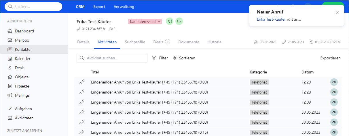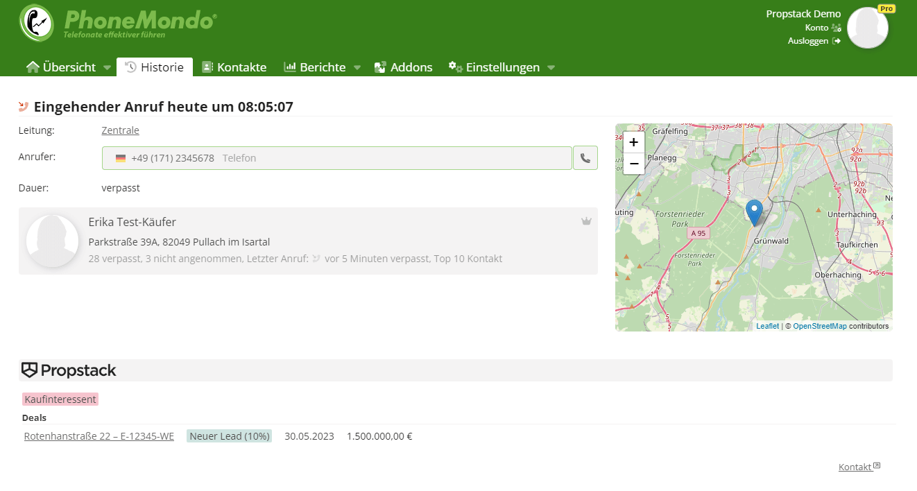 Anrufe Ihrer Propstack-Kontakte werden direkt in Ihrem Propstack protokolliert.
