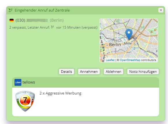 Sie haben in PhoneMondo die Möglichkeit, Notizen zu Anrufen und Kontakten zu erfassen. Die letzten Notizen zum Anrufer werden beim nächsten Anruf auch mit angezeigt.