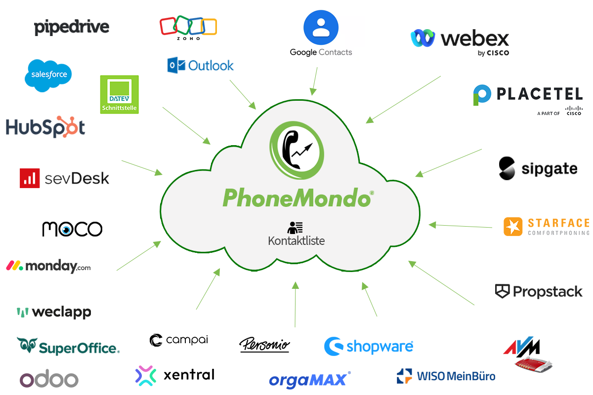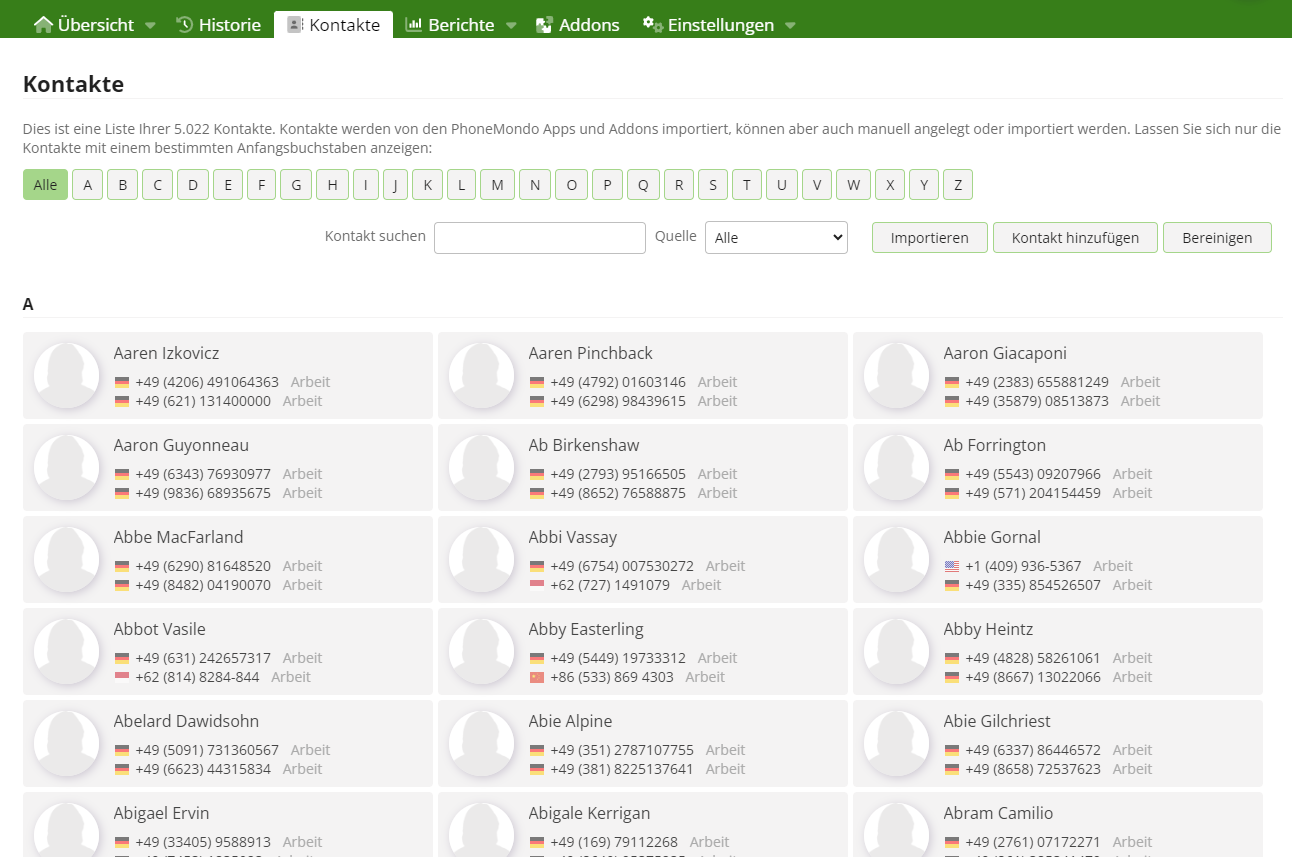 PhoneMondo importiert nach der Installation eines Addons die Kontakte aus dem verbundenen System einmalig komplett und dann in regelmäßigen Abständen die neuesten Kontakte in die zentrale Kontaktliste in Ihrem PhoneMondo.